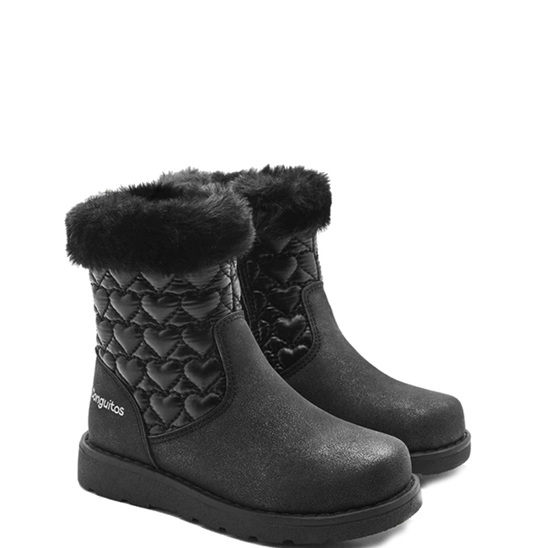 Botín acolchado con bordado de corazones. Cierre con cremallera interior. Diseño muy cómodo que brinda libertad de movimiento y soporte para el tobillo. Perfectas para mantener los pies de tus peques protegidos con un toque dulce.