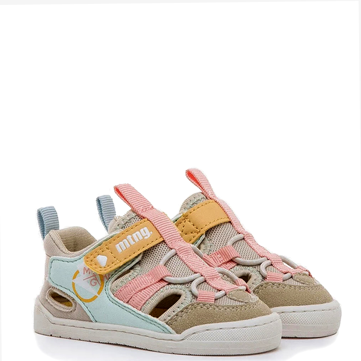Sandalias deportivas barefoot elaborada en material textil y malla. Estructura abierta. Cierre ajustable con velcro. Puntera ancha permite el libre movimiento de los dedos. Plantillas extraíbles. Suela antideslizante de 3mm de  grosor. Zero drop (totalmente plana) respeta el natural desarrollo del pie del pequeño y sus elementos flexibles y torsionables. Plantillas extraíbles. Fácil apertura facilita que el niño pueda descalzarse y calzarse de forma autónoma.