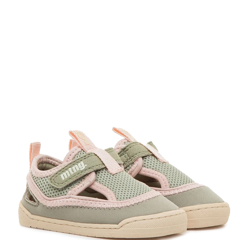 Sandalias deportivas barefoot elaborada en material textil y malla. Aberturas en los laterales. Cierre ajustable con velcro. Puntera ancha permite el libre movimiento de los dedos. Plantillas extraíbles. Suela antideslizante de 3mm de grosor. Zero drop (totalmente plana) respeta el natural desarrollo del pie del pequeño y sus elementos flexibles y torsionables. Fácil apertura facilita que el niño pueda descalzarse y calzarse de forma autónoma.