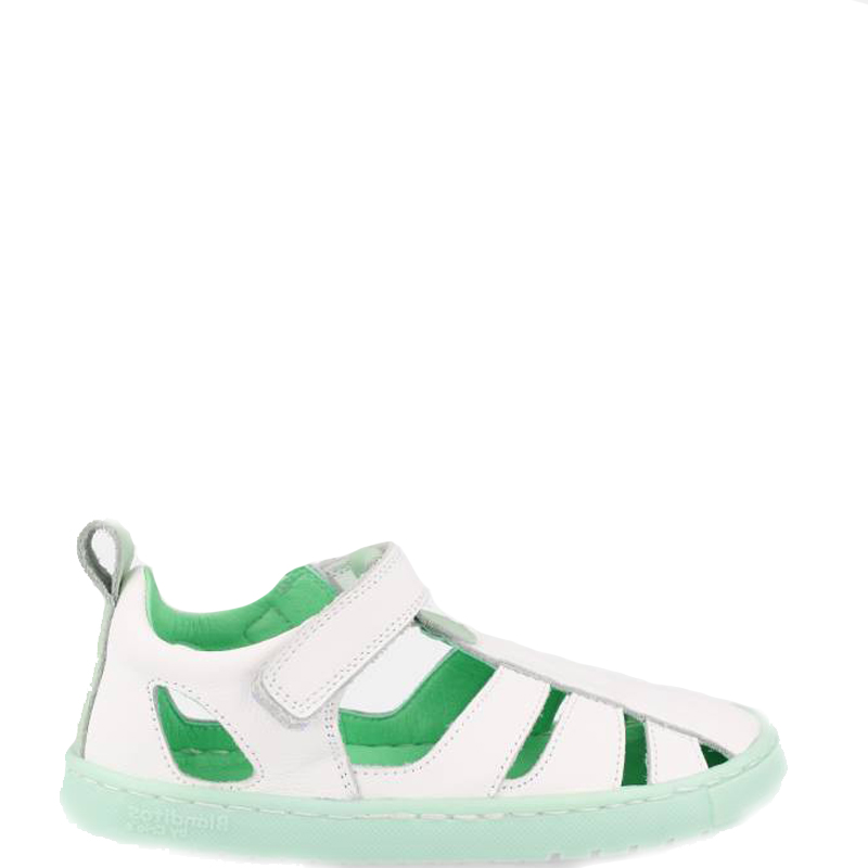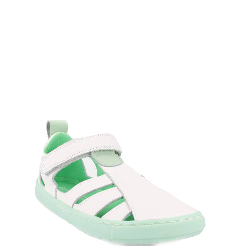 Sandalias cangrejeras de piel. Punta redondita, cerradas en la puntera y el talón para asegurar una protección óptima. Cierre mediante tira adherente. Aperturas del zapato permiten una óptima circulación del aire incluso en días muy calurosos.