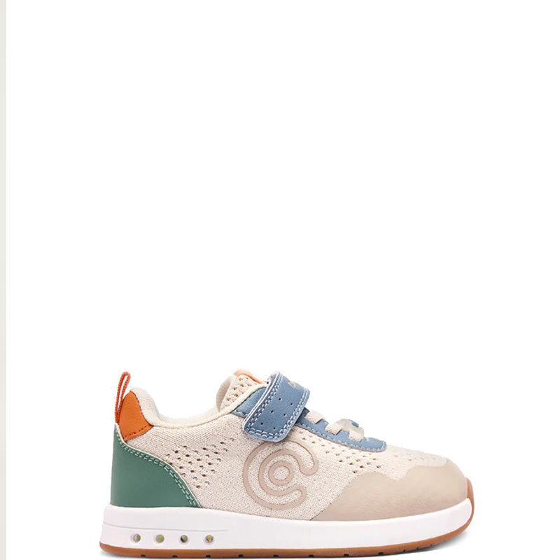 Zapatillas deportivas barefoot elaboradas en tejido. Cierre cordones elásticos y velcro. Suela flexible de goma antideslizante incorpora luces. Horma amplia y puntera ancha. Plantilla extraíble y drop cero.