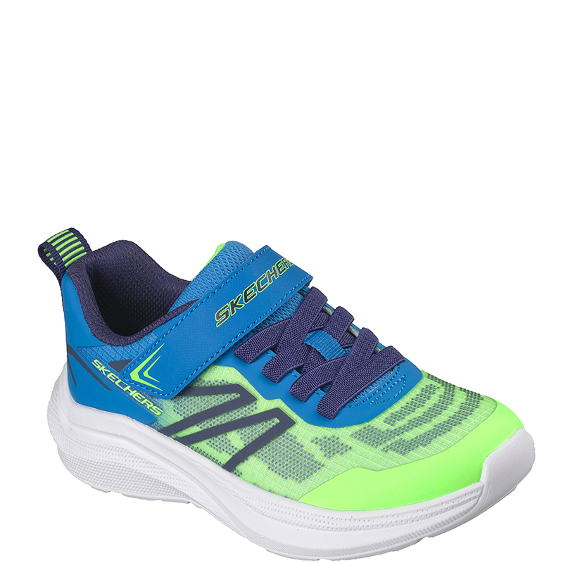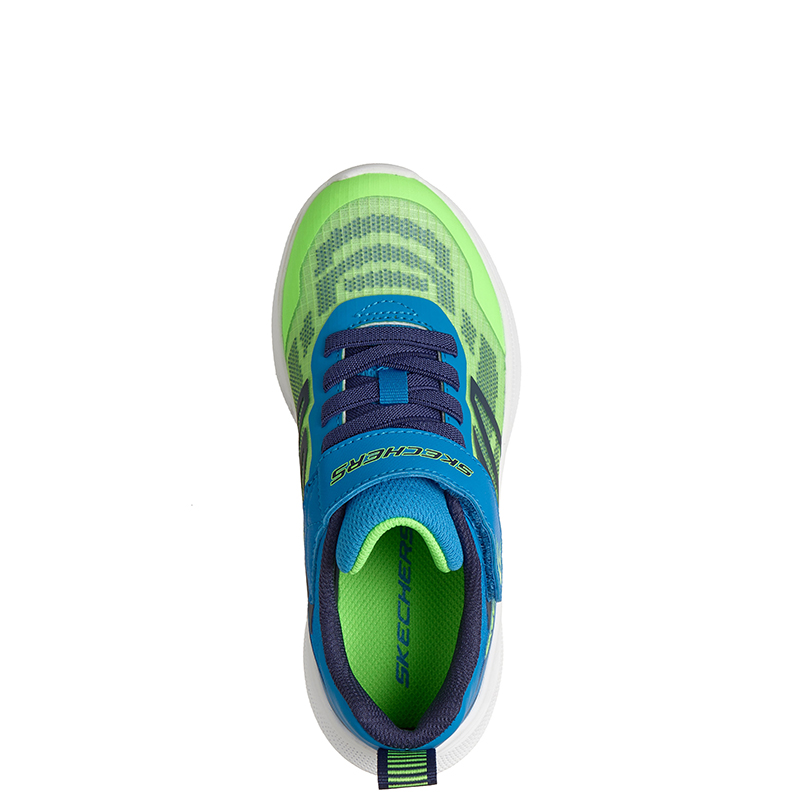 Zapatillas de la marca Skechers modelo Microspec Velocity en color Lima/Azul.