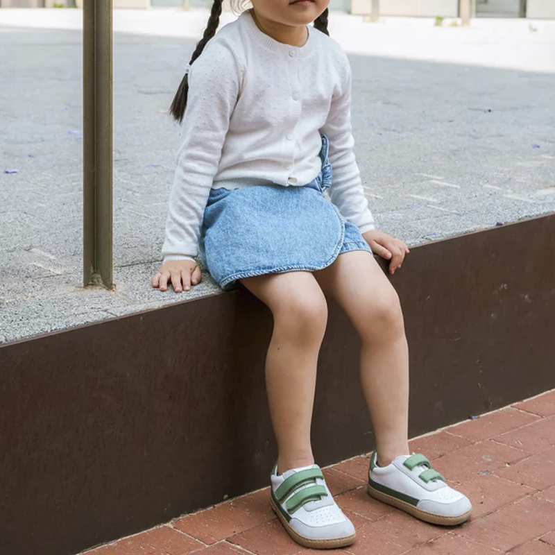 Zapato respetuoso fabricado con un 80% de materiales de base vegetal. Su exterior está hecho de residuos de uva 🍇 y su interior procede del maíz 🌽. Cierre con dos velcros.